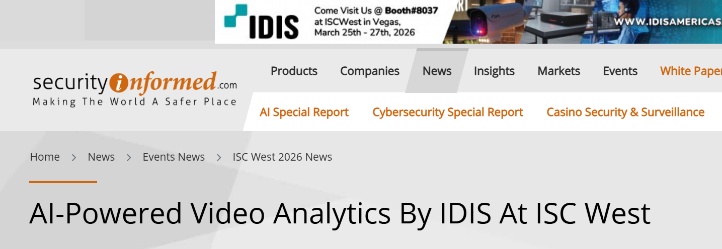 The coverage highlights how IDIS is leveraging cutting-edge AI technologies to deliver intelligent video solutions that provide actionable insights and improved situational awareness. By expanding AI capabilities across its portfolio, IDIS continues to support a wide range of applications and vertical markets.