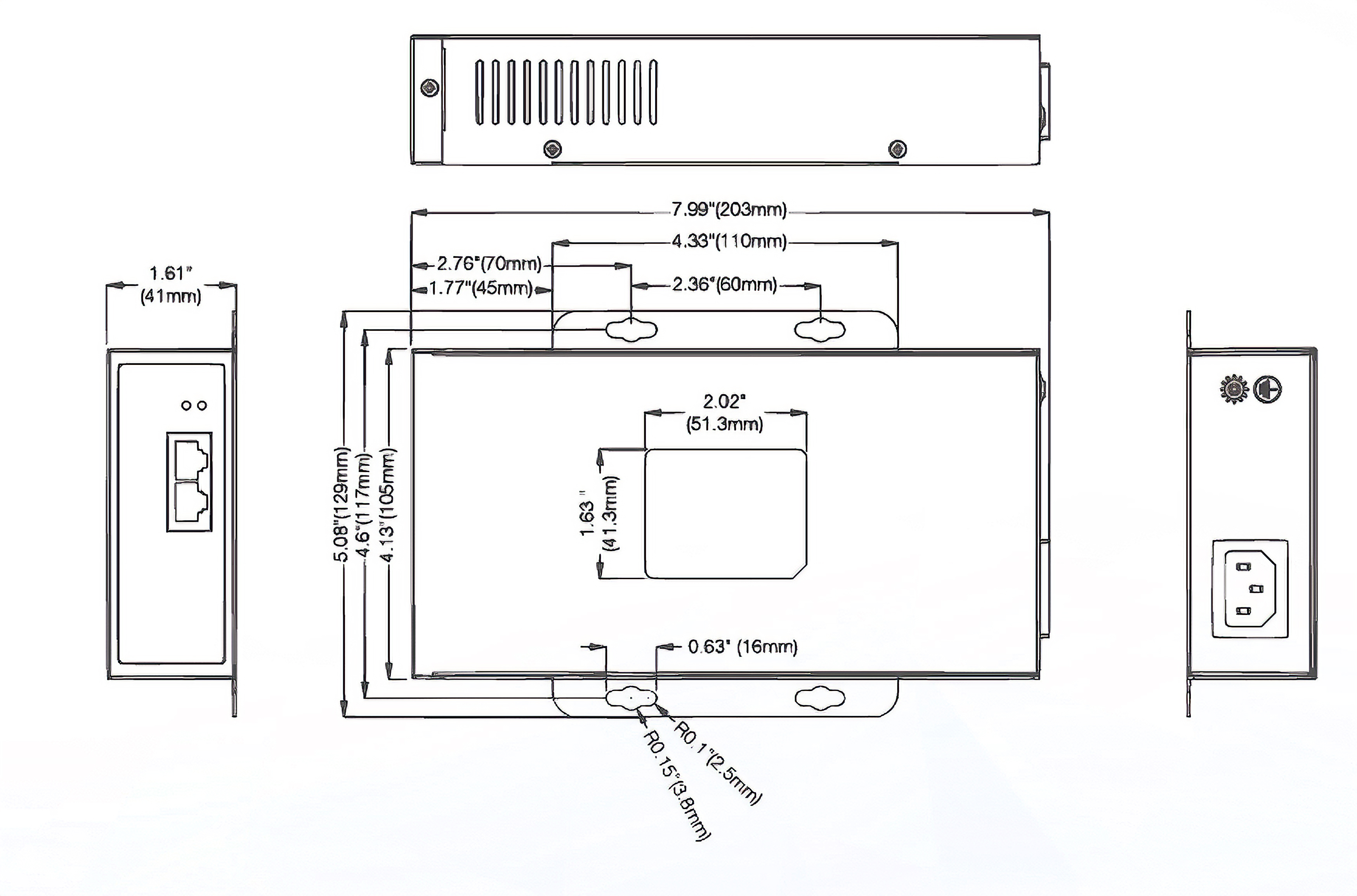 | Dimensions (W x H x D) | 129mm x 41mm x 203mm (5.08" x 1.61" x 7.99") |