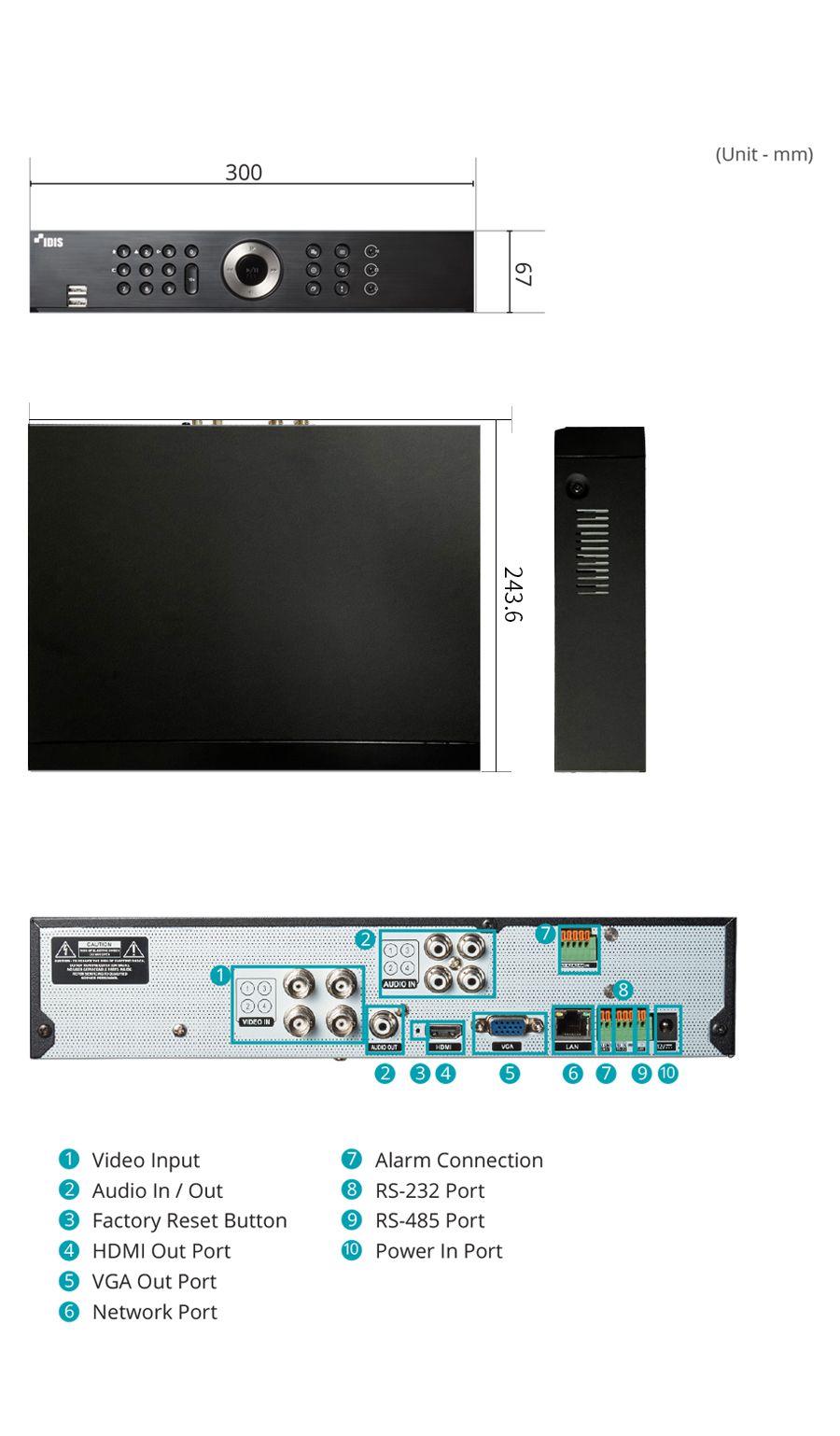 | Event Notification | Email (attach clip cbf, mp4), Callback to Remote S/W, Push notification (IDIS Mobile) |